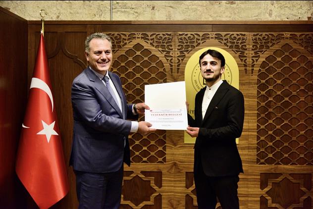 Saygı duruşu ve İstiklal Marşı ile başlayan program, Diyanet Akademisi 3. Dönem Aday Din Görevlileri Arası "Kur'an-ı Kerim'i Güzel Okuma ve Anlama Yarışması" Türkiye birincisi Hamza Mustafa AKTOPRAK’ın Kur'an-ı Kerim tilavetiyle devam etti.
